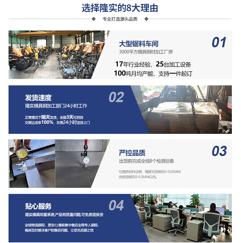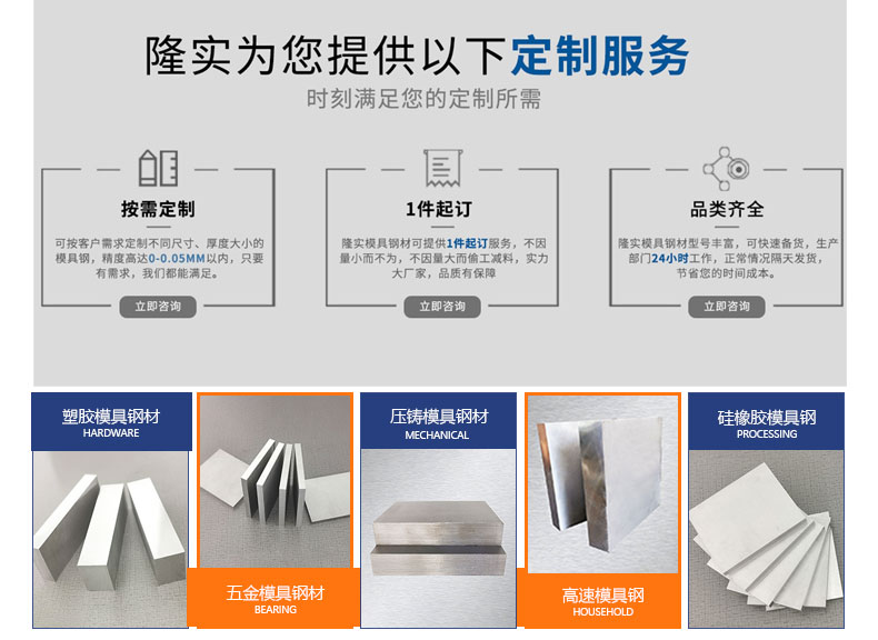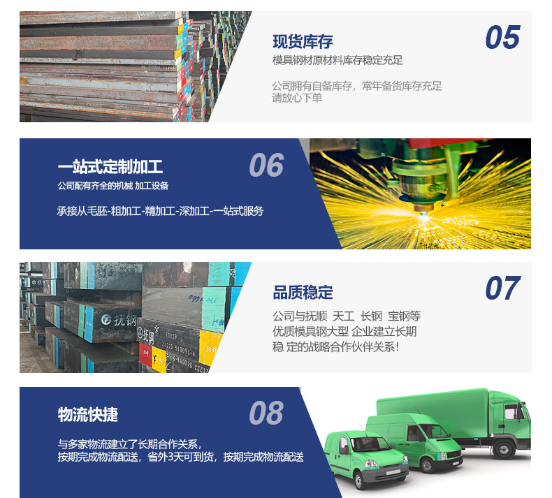 718H为真空熔炼之铬-镍-合金钢,出厂前经过淬硬及回火处理,经超音波检验,硬度及金相结构均匀,而且容易达成镜面抛光,具备下列各项优点:无淬裂和热处理变形风险:无需热处理费用:缩短模具制作周期:降低模具所需成本(例,无需侨正变形);模具易于修正;可施以氮化及表面硬化处理,以增进模具的表面硬度及耐磨性。